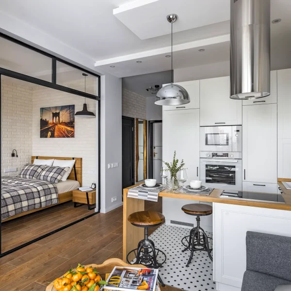 • Многофункциональная мебель помогает экономить пространство: раскладные диваны, складные столы, кровати со встроенными ящиками для хранения.